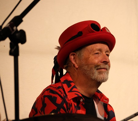 Below shows Les our caller calling the start of a dance. He'll join the band and continue to call where needed, after twice thru the dance. He'll be joined by the brass section to create irresistible dance rhythms. |