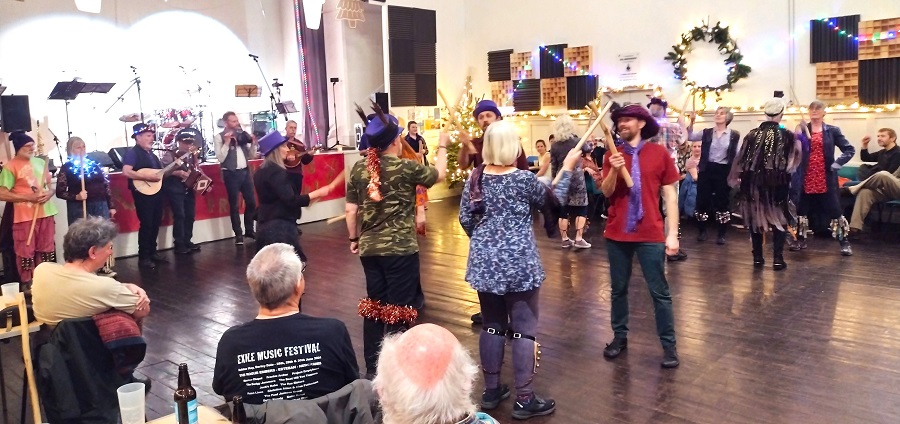 2022 - December - The annual Christmas ceilidh for Crook Morris returned to a refurbished Kendal Parish Hall, the home of the event for many years prior to the Town Hall. Another great evening playing with the Big Band. Thanks as usual to Ben Farmer, our sound man on the night. Crook Morris said afterwards - The Tumbling Tom Big Band were quickly on fine form with a full dance